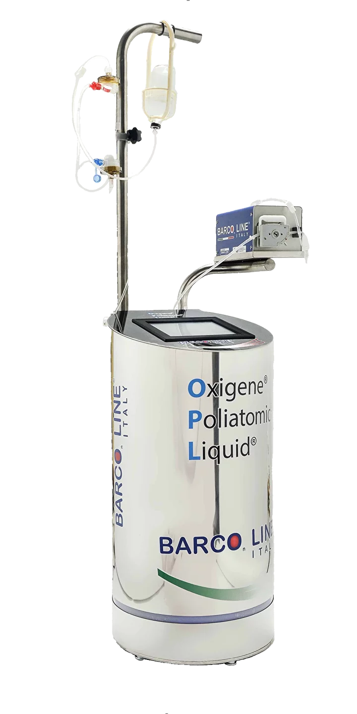 Для внутривенных вливаний используется стерильная вода для инъекций, обогащенная OPL - кислородной полиатомарной жидкостью - с использованием специального оборудования производства IstitutoInternazionaleBarco SPA Srl (Италия). Процедура напоминает обычнуюкислородотерапию при помощи внутривенных капельниц. Важно отметить, что раствор, изобретенный и запатентованный профессором Барко, Италия, сохраняет свои свойства только в течение двадцати минут после насыщения, поэтому, эту процедуру следует проводить только в клинических условиях, где есть специальное оборудование. Количество вводимого раствора зависит от индивидуальных особенностей организма и варьируется от 20-50 мл., а продолжительность процедуры - не более пятнадцати минут (в зависимости от диагноза). Процедура обычно не сопровождается неприятными ощущениями.